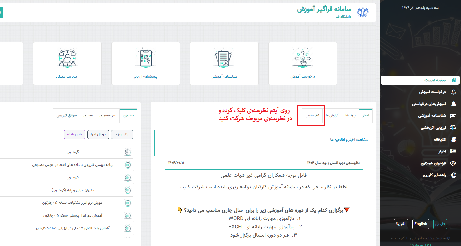 چنانچه عنوان دوره آموزشی در سامانه آموزش نیست از عنوان جدید جهت ثبت در سامانه فراگیر یا کد 0088-2 استفاده کنید
